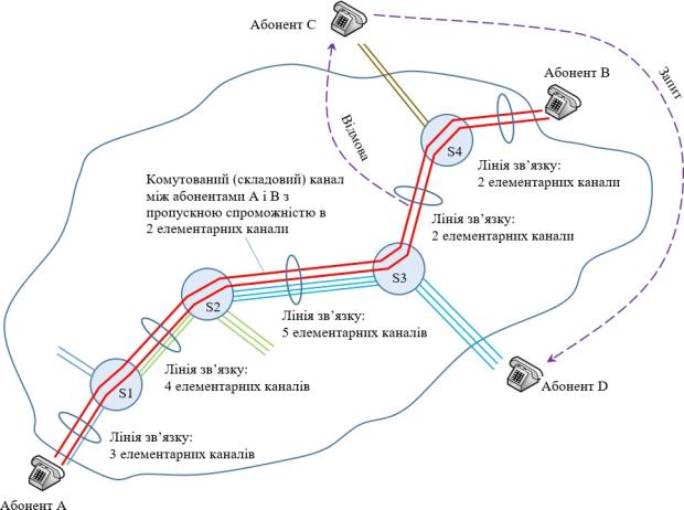 У розглянутому прикладі для з’єднання абонентів А і В був
