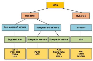 глобальні мережі (Wide Area Network, WAN), побудовані з використанням транспортних