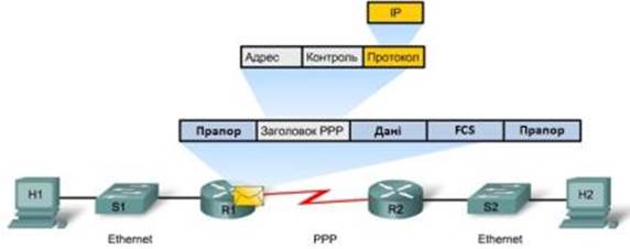 синхронізацію. При кожному підключення до WAN, дані інкапсулюються в кадри,