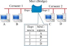 портів сегментах. При цьому міст враховує адреси