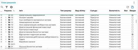Довідник План рахунків містить перелік рахунків, які призначені для