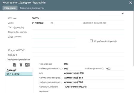 Довідник підрозділів натиснути на кнопку Додати