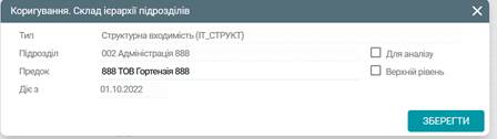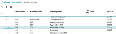 вкладкою Склад ієрархії підрозділів, знаходячись на даній