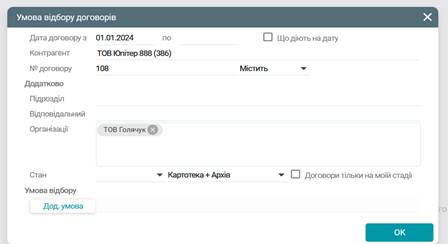 створюється за допомогою пункту меню Договори, який розташовано у розділі Продажі і покупки модуля Довідники.