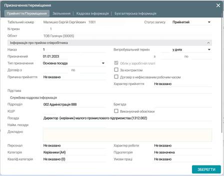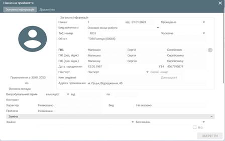 Також створюється автоматично особова картка працівника. Якщо потрібна