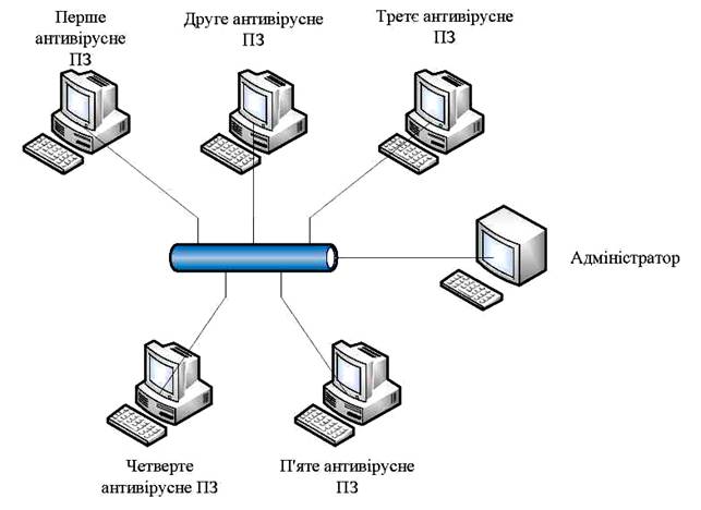 локальній мережі (мал. 3) на різних комп’ютерах, встановити різні антивірусні