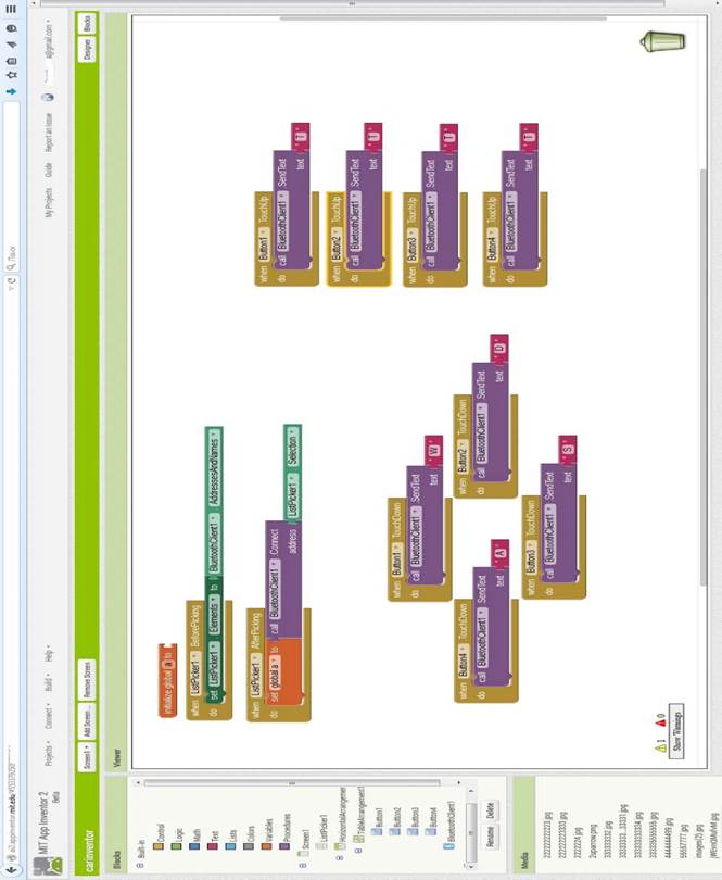 Рисунок 5.4 – Програма керування клінінговим пристроєм розроблена в середовищі Mit AppInventor2