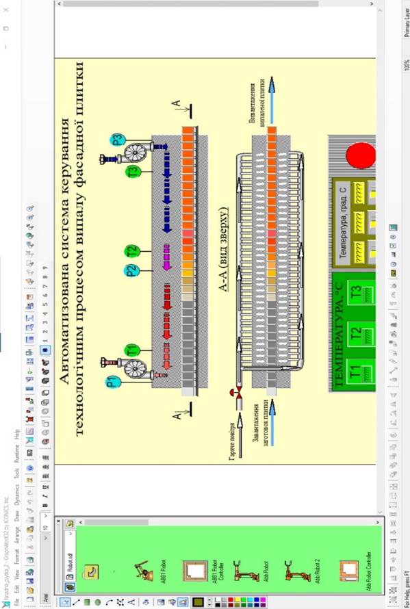 Рисунок 6.1 – Загальний вигляд панелі керування процесом випалу фасадної плитки на базі SCADA-системи «Genesis 32» в режимі розробки