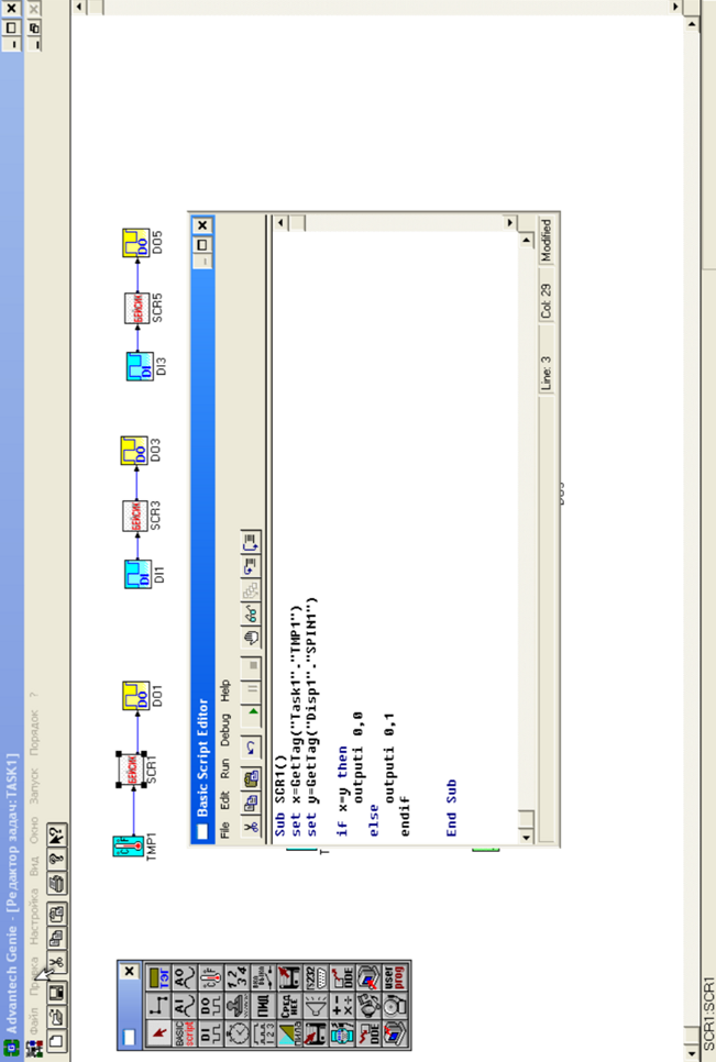 з’єднуємо блок дискретного вводу DI3 з Basic-скриптом SCR5, а його нульовий