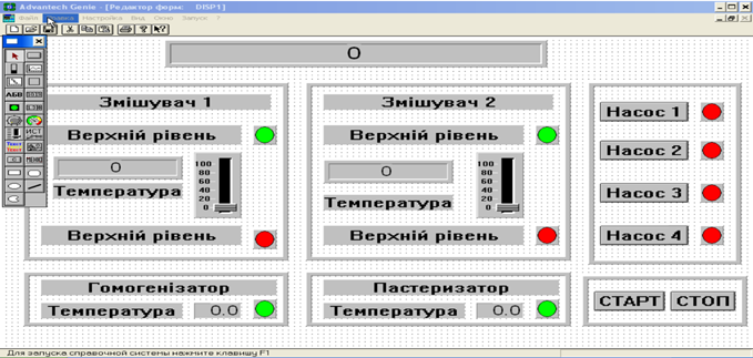 процесом з робочого місця оператора ЕОМ на основі даної програми в SCADA-системі Genie 3.0 була розроблена стратегія, що включає в себе
