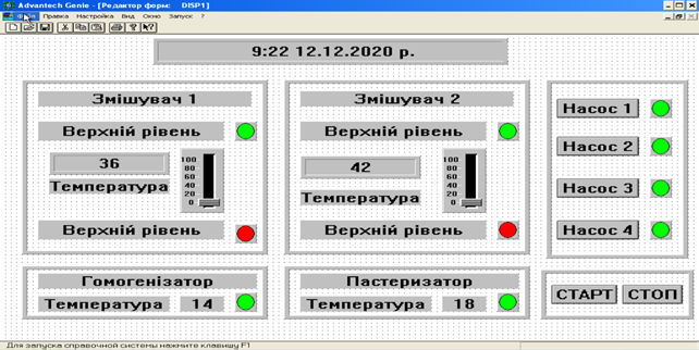плитки на базі програмного забезпечення вищого рівня SCADA-систему «Genesis 32» фірми Iconics,