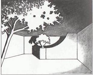 (підпірні стінки або огорожа, повита рослинами) у спрямованих променях світла
