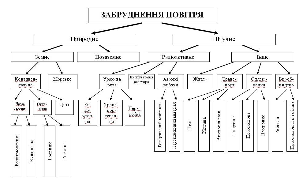 основні джерела шкідливих викидів у повітряний басейн (промислові та енергетичні об’єкти, автотранспорт) та їхні характеристики;