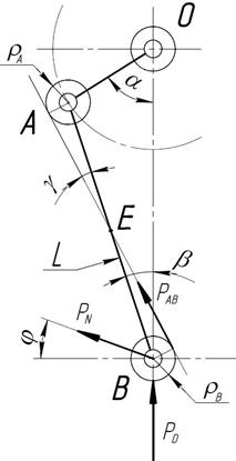 діє вздовж шатуна та силу, спрямовану нормально до направляючих повзуна