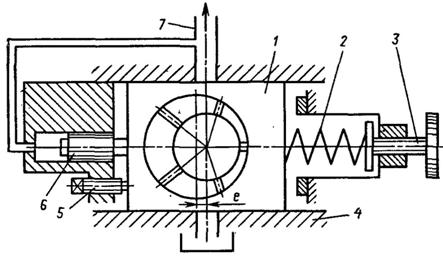 Рис. 11.3. Схема радіально-плунжерного ротаційного насосу з автоматичним регулюванням