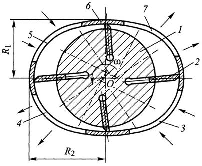насосі (рис. 11.2) навколо нерухомої розподільчої осі 3 обертається ротор 1.