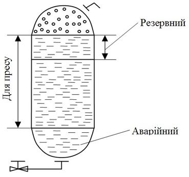 балона складається з об’єму рідини, що віддається пресу, нижнього аварійного і