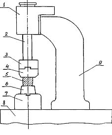 поковка; 6 – нижній бійник; 7 – шабот; 8 – фундамент;