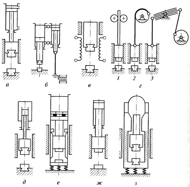 (схеми 1, 2, 3 рис.12.2, г). В наслідок малого ККД ці молоти останнім часом не