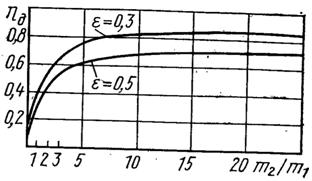 Вплив співвідношення ударних мас на ККД не постійний (рис. 12.3). При відношенні