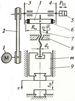 ротор-маховик; 3 – гвинт пресу; 4 – гайка; 5 – повзун