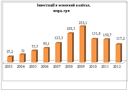 Рис.12.1. Інвестиції в основний капітал за 2003-2012роки.